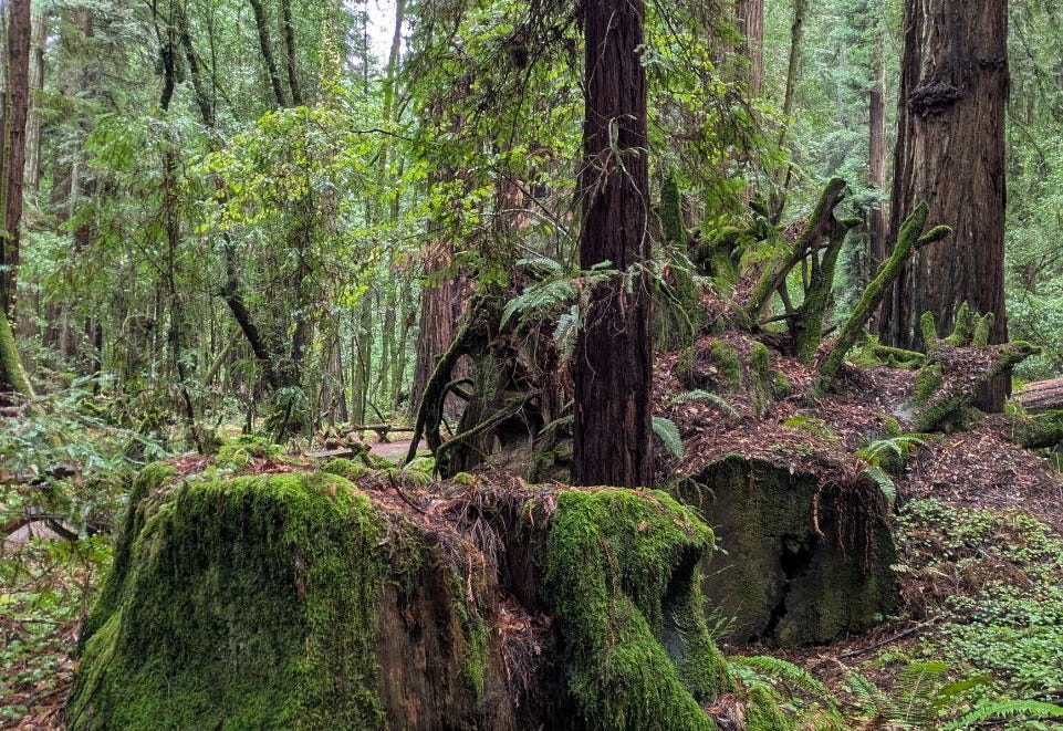 twenty minutes immersed in the warm, enveloping canopy of the trees (Armstrong Redwoods),